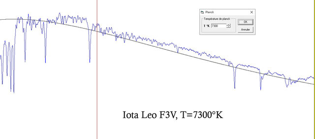 Adattamento della curva di temperatura al profilo spettrale della stella Iota Leo F3V