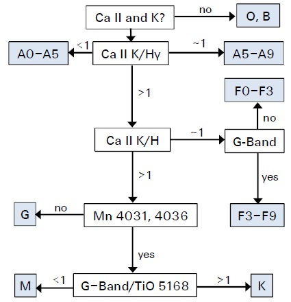 Diagramma di flusso per la determinazione approssimativa della classe spettrale. Lectures from University of Freiburg i.B. [56] and University of Jena