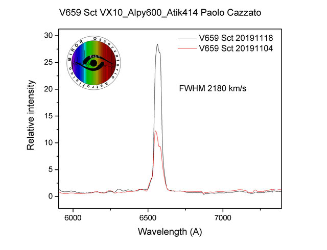 Le stelle Novae in fase di esplosione eiettano gas che si espande con una velocità altissime. Nel caso della V659 Sct la velocità di espansione ha raggiunto circa 2180 km/s nei primi giorni del Novembre 2019