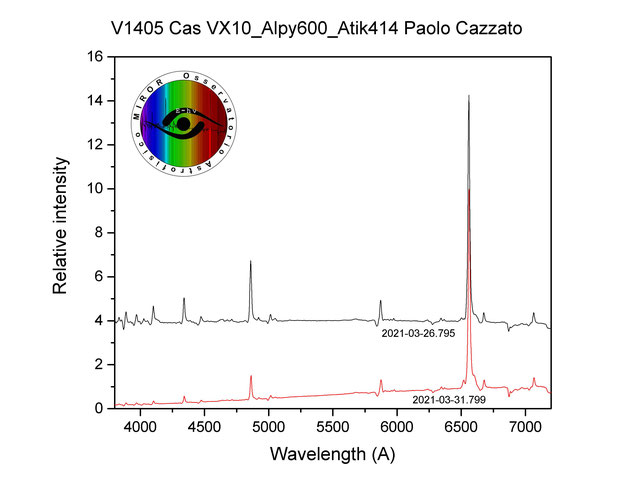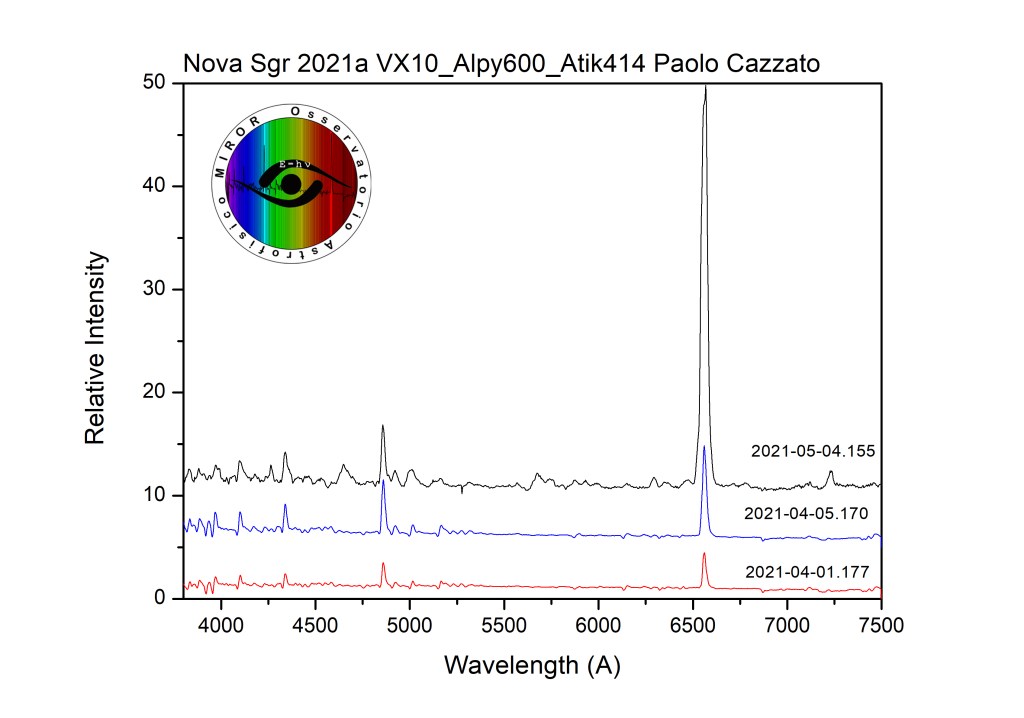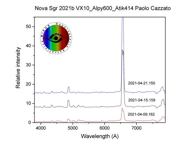 Il primo spettro registrato in ARAS è quello riportato in rosso e acquisito il 9 Aprile 2021.